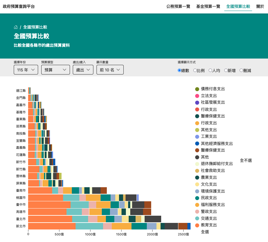 理解預算不再只是少數專業者的工作。透過直覺的查詢與比較介面,讓公民也能輕鬆參與預算討論,看懂政府把錢花到哪裡。